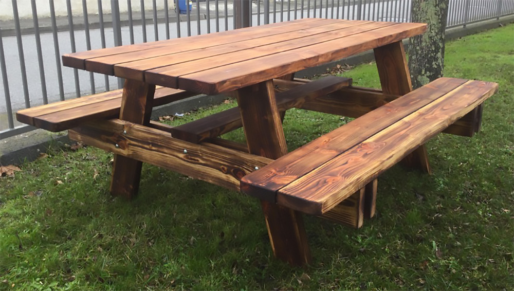 TABLE AVEC DEUX BANCS. Plateau 5 planches.